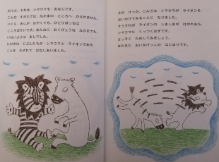 シマウマは ライオンの いちげきを ひらりと かわし、