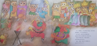 おうさまが、「どうぞ、おめんを おとりくだされ」と、
