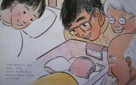 あかちゃんが うまれてくると わかったとき、かぞくは みんなで おおよろこびしました。