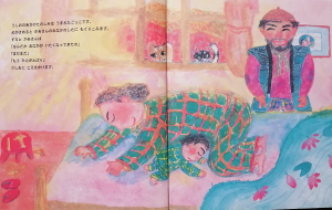 それは それは げんきな こえが おへやいっぱいに ひびいたの。